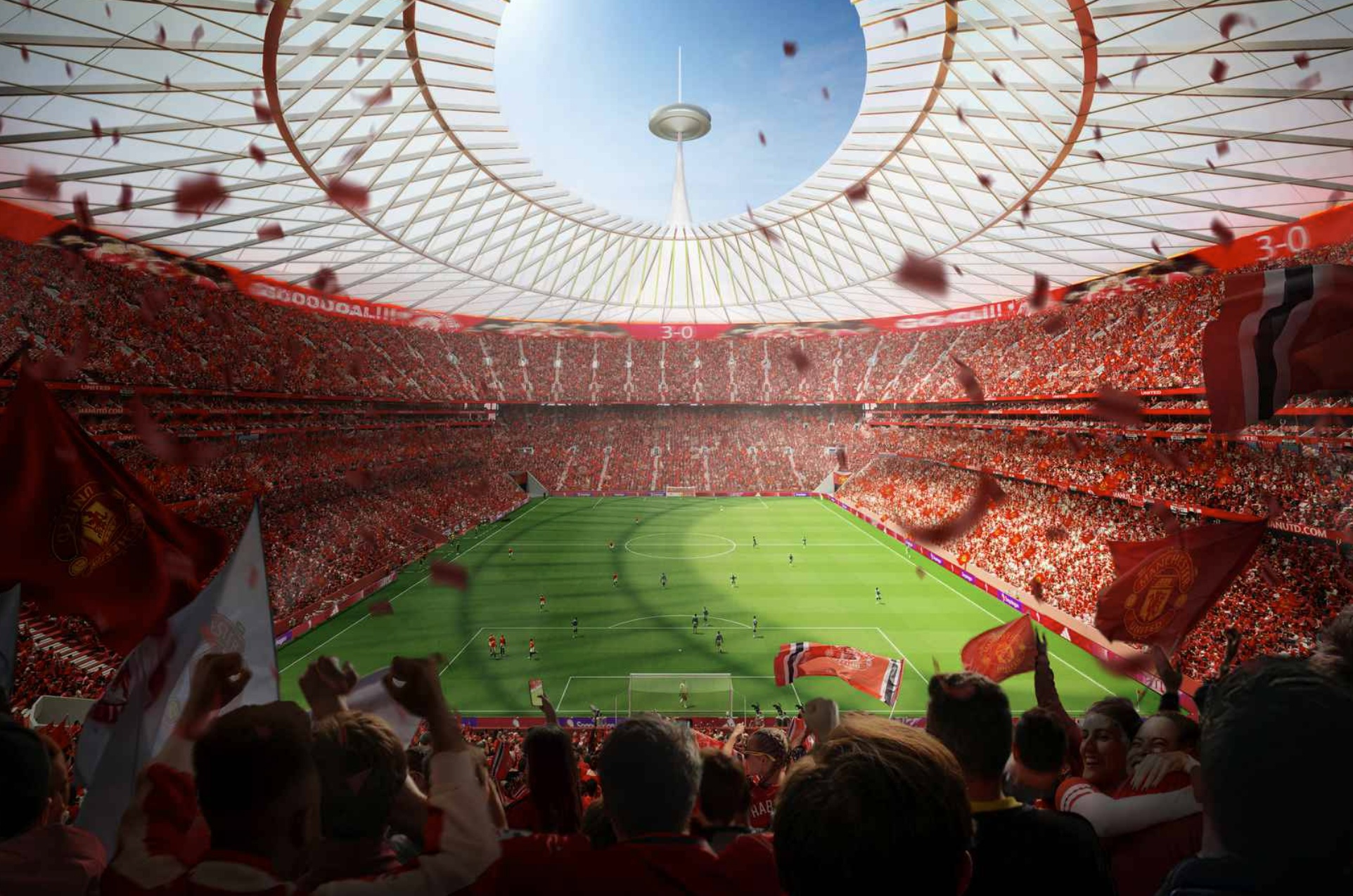 Manchester United, mart ayının ikinci haftasında, merakla beklenen İngiltere’nin en büyük stadyumunu inşa etme planlarını, takımın sahadaki kötü gidişatının taraftarı öfkelendirdiği, kulübün ekonomik dar boğazının, alışılmadık tasarruf tedbirleriyle ayyuka çıktığı bir dönemde duyurmuştu.